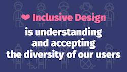 ❤ Inclusive Design is understanding and accepting the diversity of our users, despite our preconceptions. We have users with disabilities, we just don’t know about many of them.